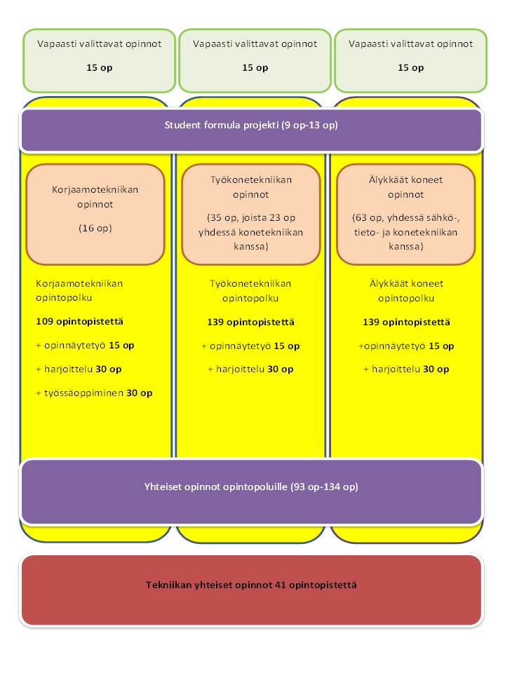 1 vuosi. Opiskelija hallitsee ajoneuvon matemaattiset ja fysikaaliset perusteet ja harjoittelijana tutustuu työelämään ensimmäisen ja toisen vuoden välissä.