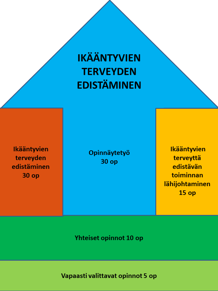 Ikääntyvien terveyden edistäminen on työelämälähtöinen korkeakoulututkinto. Koulutuksessa opiskelija saavuttaa sosiaali- ja terveysalan ylemmän ammattikorkeakoulututkinnon osaamisen, joka on vertailukelpoinen EU-maiden vastaavien tutkintojen kanssa (EQF 7). Koulutuksen jälkeen opiskelijalla on valmiudet toimia ikääntyvien terveyden edistämisen asiantuntijalta ja esimieheltä vaadittavissa tehtävissä kansallisesti ja kansainvälisesti. Koulutuksen myötä opiskelija saavuttaa teoreettisesti syvälliset tiedot asianomaiselta alalta ja valmiudet hankkia tutkittua tietoa toiminnan perustaksi. Opintojen aikana opiskelija oppii arvioimaan kriittisesti oman alansa toimintaa ja kehitystä. Valmistuttuaan opiskelija osaa kehittää toimintaa näyttöön perustuen.